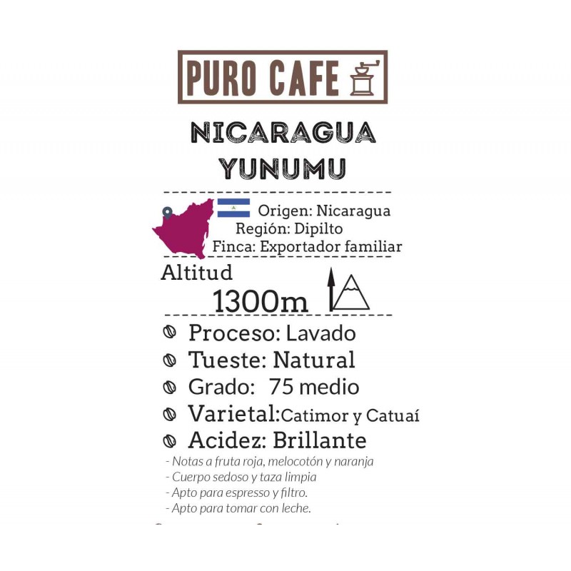 El Café Nicaragua Yunumu se vende en grano en envases de 250 gramos perfectamente sellados para así conservar todo su sabor y aroma hasta su apertura.