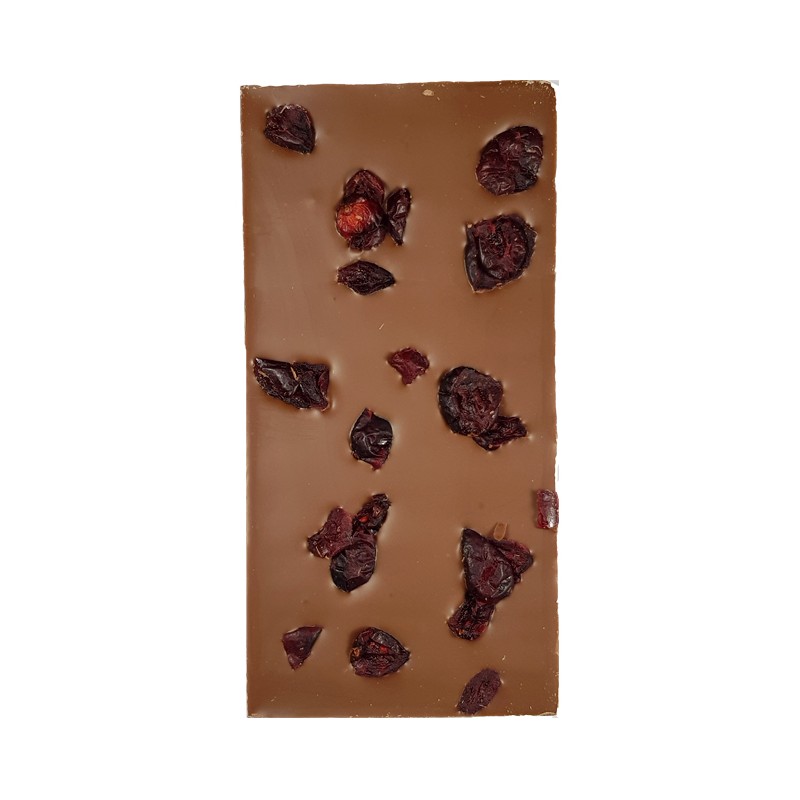 Tableta de 100gr chocolate con un contenido de cacao del 36% combinado con arándanos deshidratados, que completan el sabor de este fino chocolate con leche..