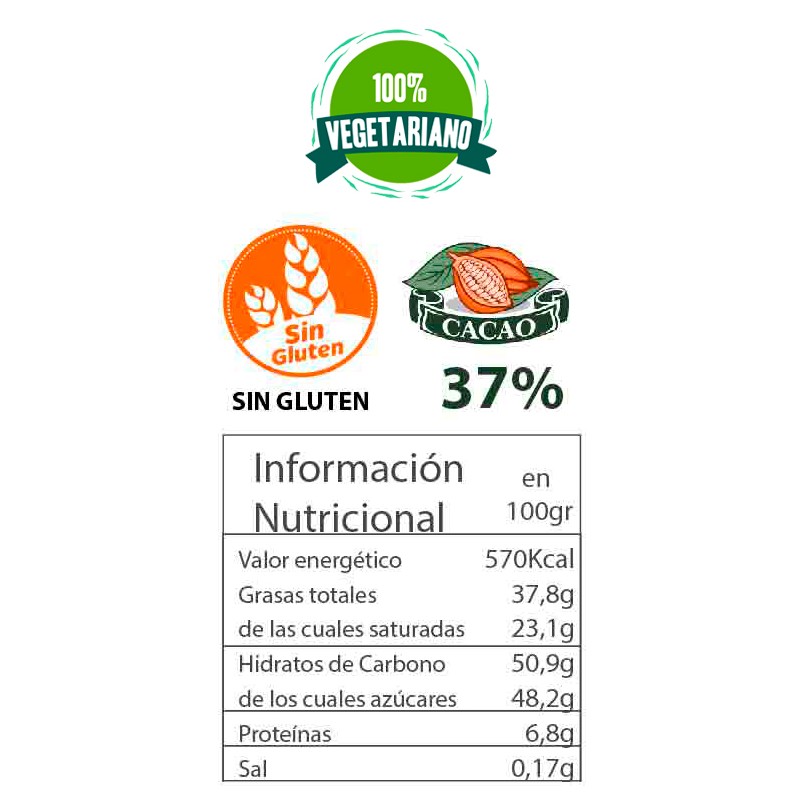 Tableta de 100gr chocolate con un contenido de cacao del 37% proveniente de América del Sur combinado con granos de café moca tostados y astillas de granos de cacao, lo que le da un aroma ligeramente amargo y con cuerpo..