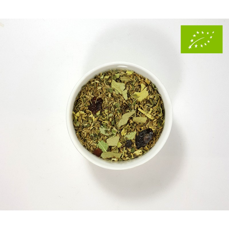 La variedad de Infusión “Respira Bien Bio” está compuesta por Anís verde, hojas de tila, menta piperina, escaramujo, raíz de regaliz, tomillo y hojas de eucalipto. Procedentes de cultivos ecológicos