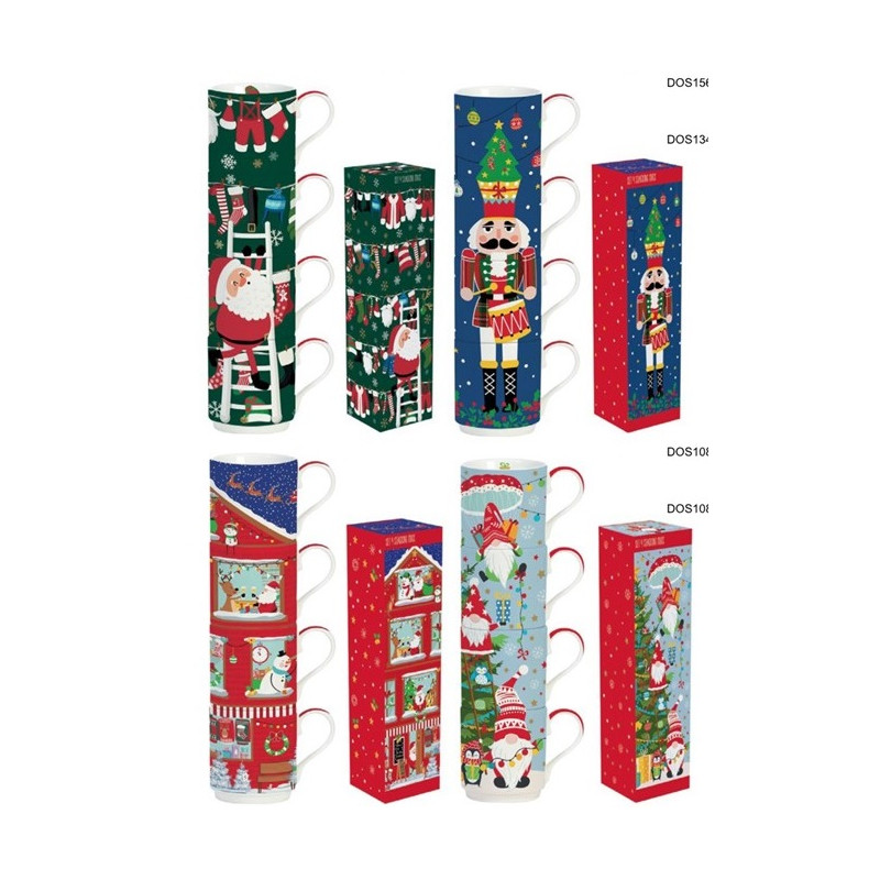 Rojo: Set 4 tazas apilables Casita de navidad.