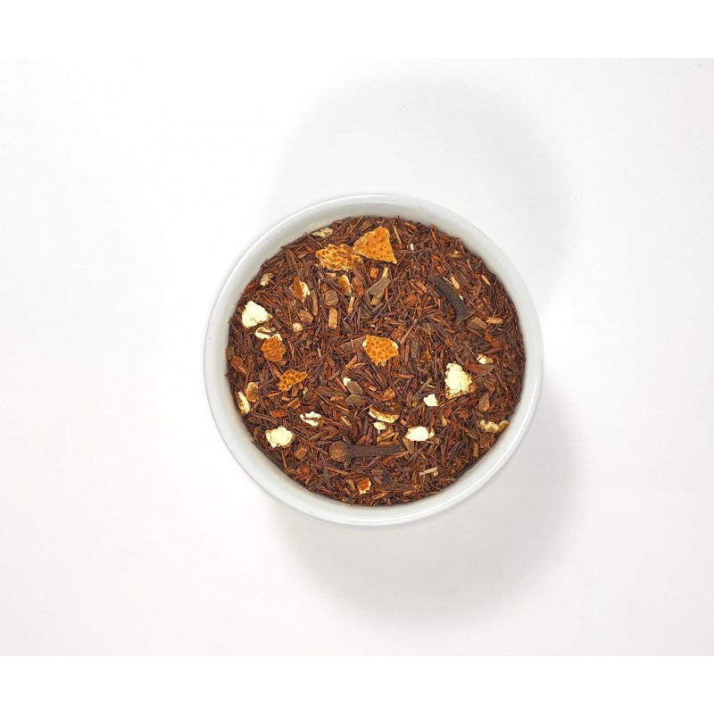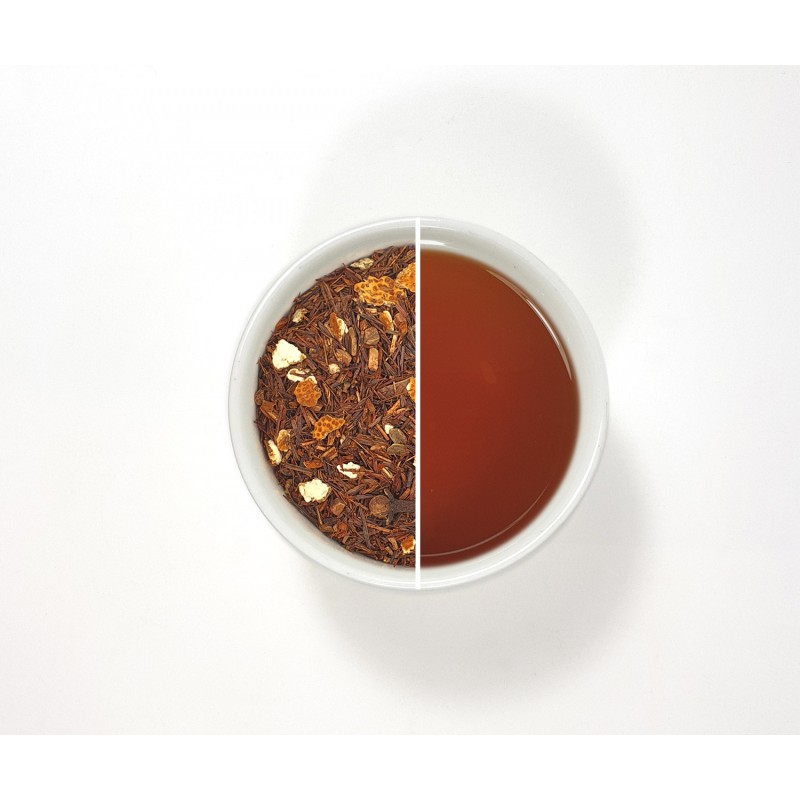 El Rooibos Naranja canela es una mezcla clásica a base de rooibos rojo, piel de naranja, astillas de canela y clavo de madagascar.