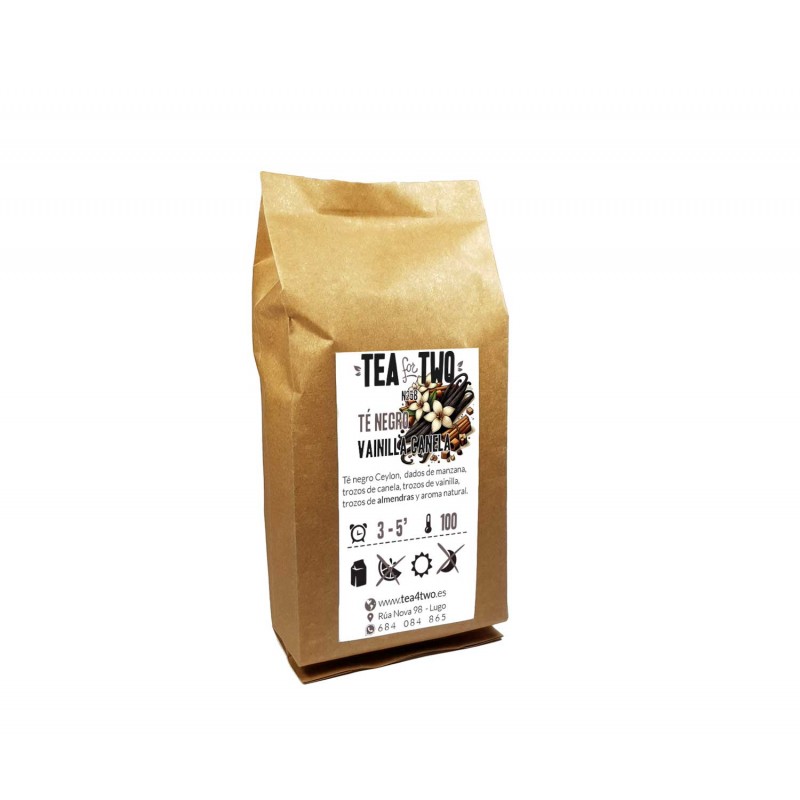 Té Negro Vainilla Canela es una infusión cálida y reconfortante con té negro Ceylon, dados de manzana, trozos de canela, vainilla natural, almendras y un delicado aroma natural. Sus notas dulces, especiadas y ligeramente afrutadas envuelven los sentidos en cada sorbo.
