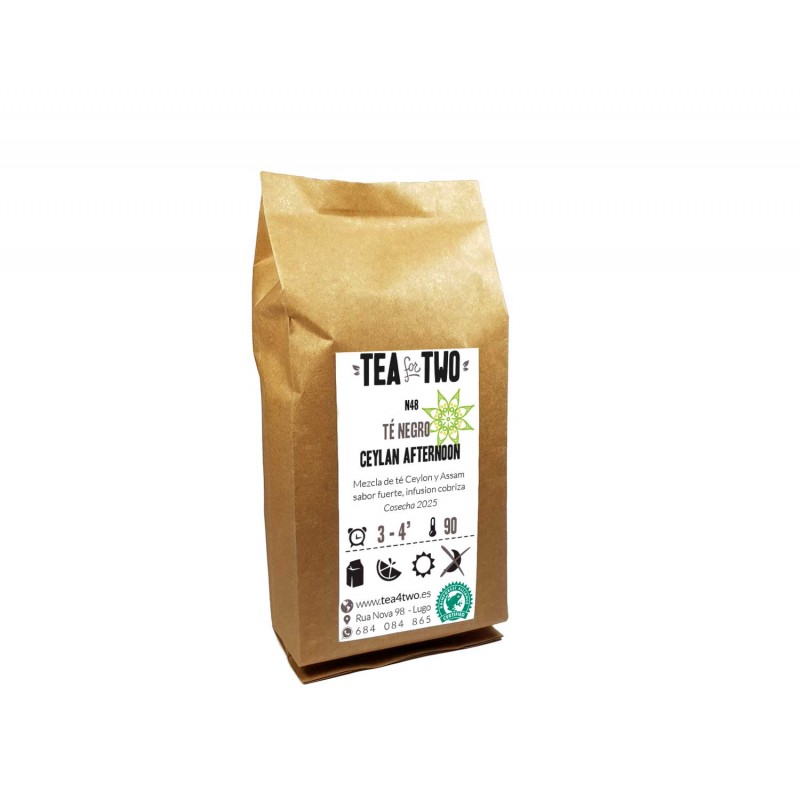 El Té Negro Ceylon afternoon tiene un sabor intenso, y de infusión cobriza. Está compuesto por blend digestivo de tés negros de ceylon y assam.