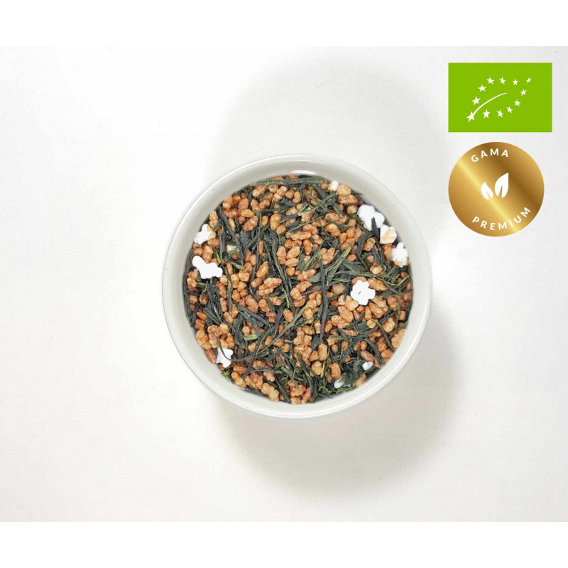 "Genmai" significa literalmenre arroz natural. Esta especialidad consiste en el té Bancha ecológico, al que se añade aproximadamente un 50 % de arroz tostado e inflado. Esto le aporta ese sabor incomparable que se caracteriza por la suavidad del té Bancha y unas notas agradables, ligeramente dulces a frutos secos, nuez y caramelo.